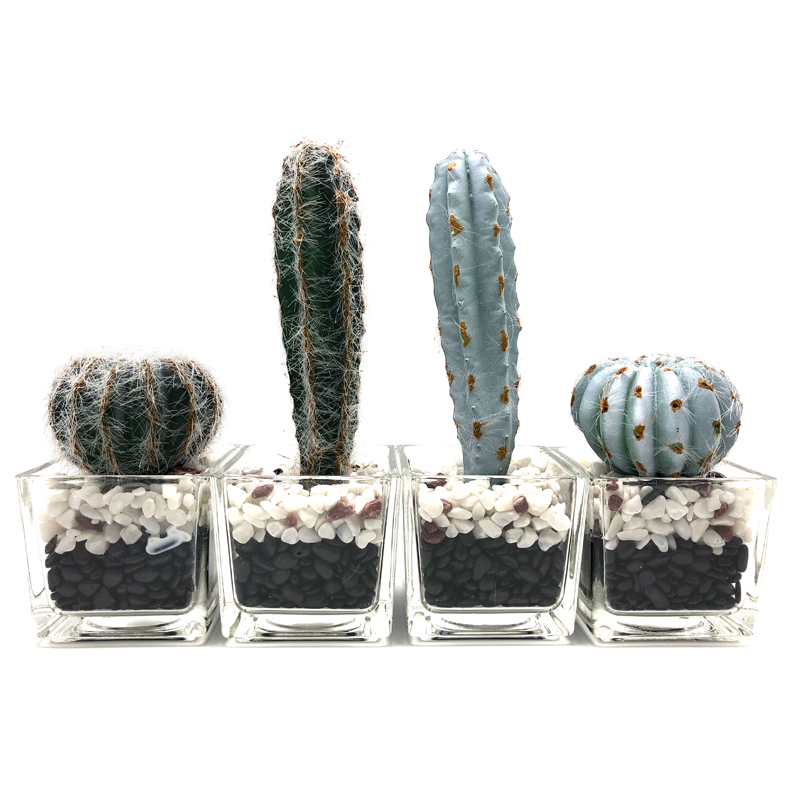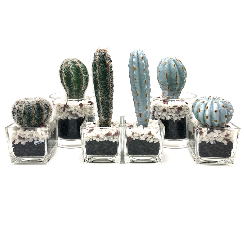 Sztuczny kaktus w ozdobnej szklanej doniczce Sztuczna soczysta dekoracja do domu lub biura